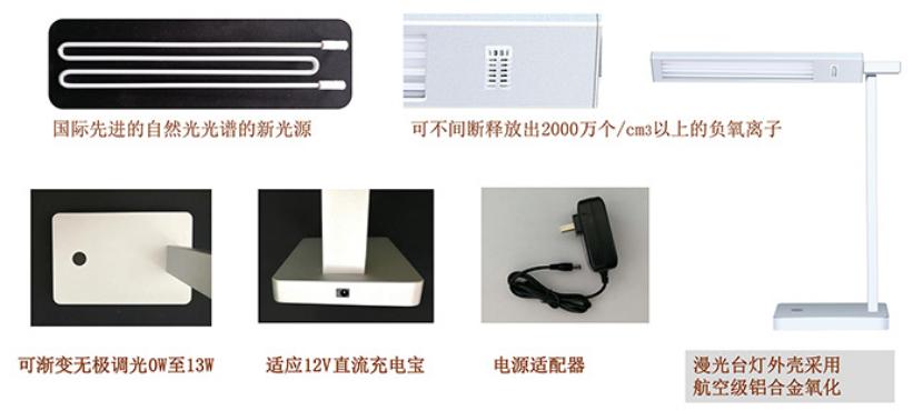 漫光台灯采用一种专业的T2玻璃管作为灯管,这种玻璃管具有独特的UV-CUT功能,能够有效过滤(UVA)紫外线,从而隔绝光源的紫外线对人体造成的伤害。因此,漫光源除了极少数无危害蓝光和极少数紫外线(可以忽略不计)外,完全保留了自然光光谱中对人类有益的光谱(即:青、绿、黄、橙、红)。漫光台灯不但光源纯正、优质,其在工作时,还可产生大量小粒径负氧离子(每立方厘米不间断释放出2000万个以上负氧离子)。负氧离子是空气中的“维生素”,对人类健康具有很好的保护作用,能够通过人的神经系统及血液循环对人的机体生理活动产生影响,增强人体的免疫力。同时负氧离子能够吸附空气中的灰尘,对缓解雾霾也能够起到一定的作用。负氧离子还能消除烟尘烟味、异味、甲醛、甲苯,并杀死细菌等,起到净化空气的作用。使用漫光台灯能够使人感觉到置身于瀑布边和森林之中般的舒适。